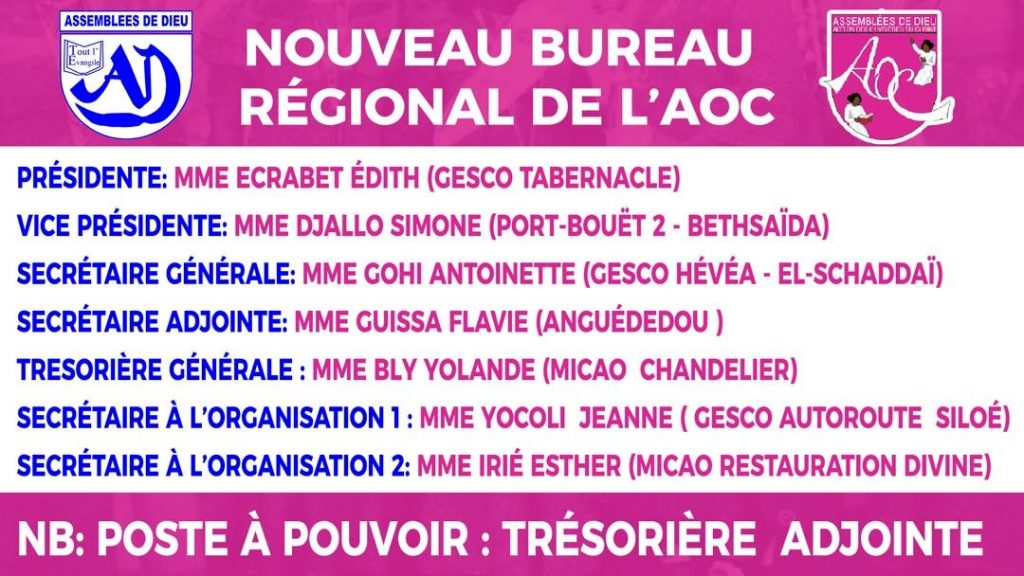 Notons que, selon les instructions du nouveau Bureau Exécutif National (BEN) de l’Eglise des Assemblées de Dieu de Côte d’Ivoire (EEADCI), le culte a été suivi par un moment de jeûne et prière de toute l’église, comme institué désormais dans toutes les églises du Mouvement, tous les premiers dimanches du mois, en vue de soutenir les activités de l’EEADCI et recommander le mois qui commence au Seigneur.
