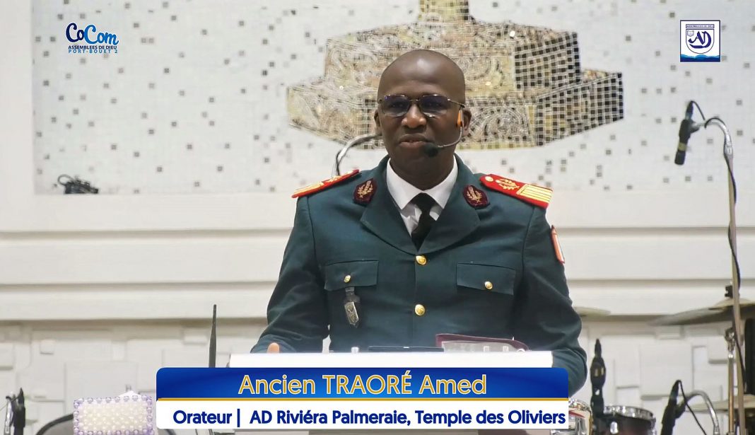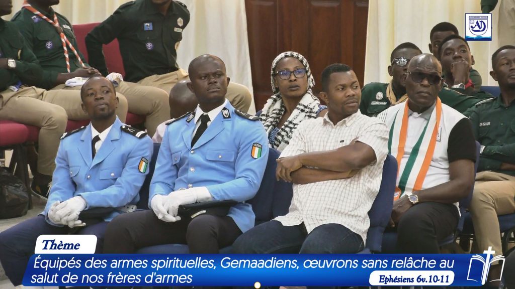 Pour la circonstance, c’est le Médecin Colonel Major TRAORÉ Amed, Ancien à l’église des AD de la Riviéra Palmeraie, Temple les Oliviers, qui a été sollicité pour traiter le thème de cette année, ainsi libellé : Équipés des armes spirituelles, Gemaadiens, œuvrons sans relâche au salut de nos frères d’armes, avec pour textes bibliques de base Éphésiens 6v.10 à 11 et Néhémie 2v.18.